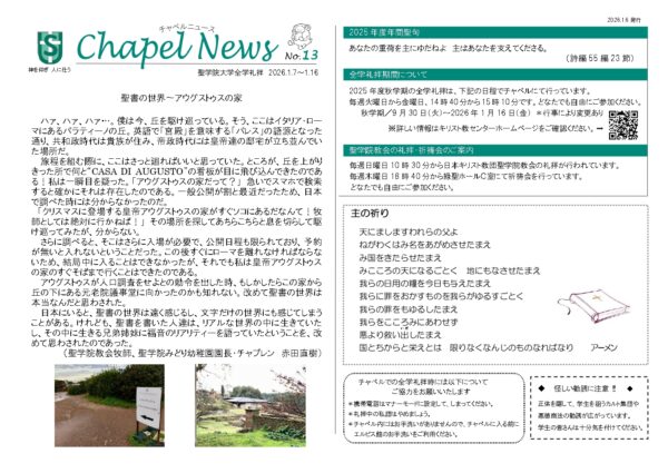 Chapel News No. 13(2026.1/7-1/16)を発行しました。